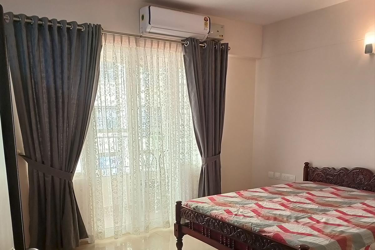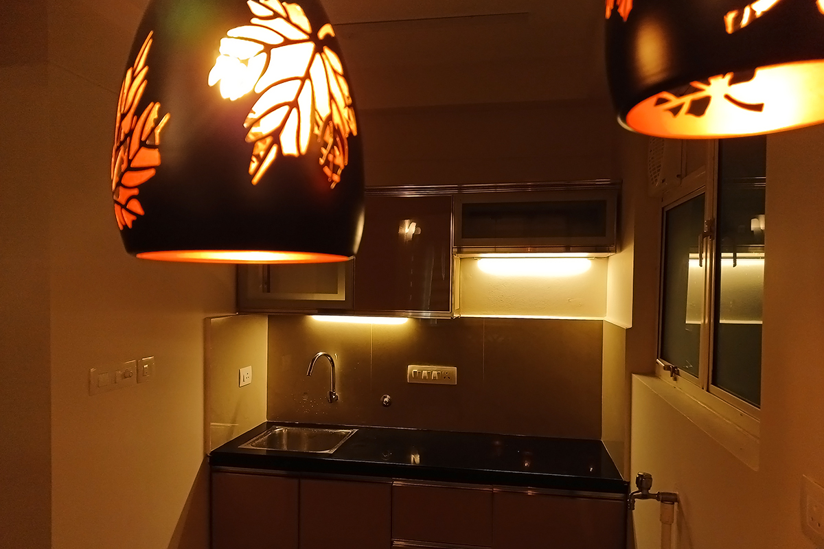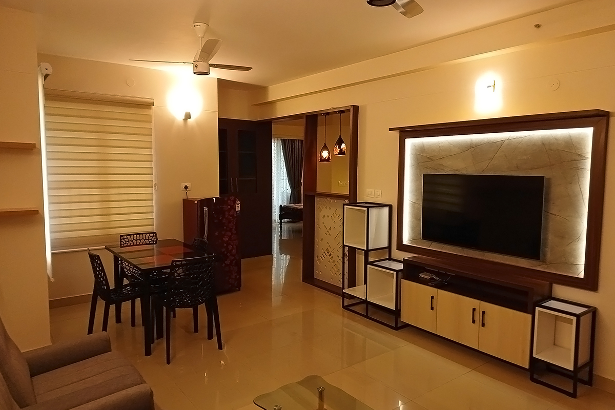 This modern home theater features acoustic dark green walls with LED accents, a acoustic starry night ceiling, and a big screen for immersive movie nights. Perfect spot to chill and binge your fav films.